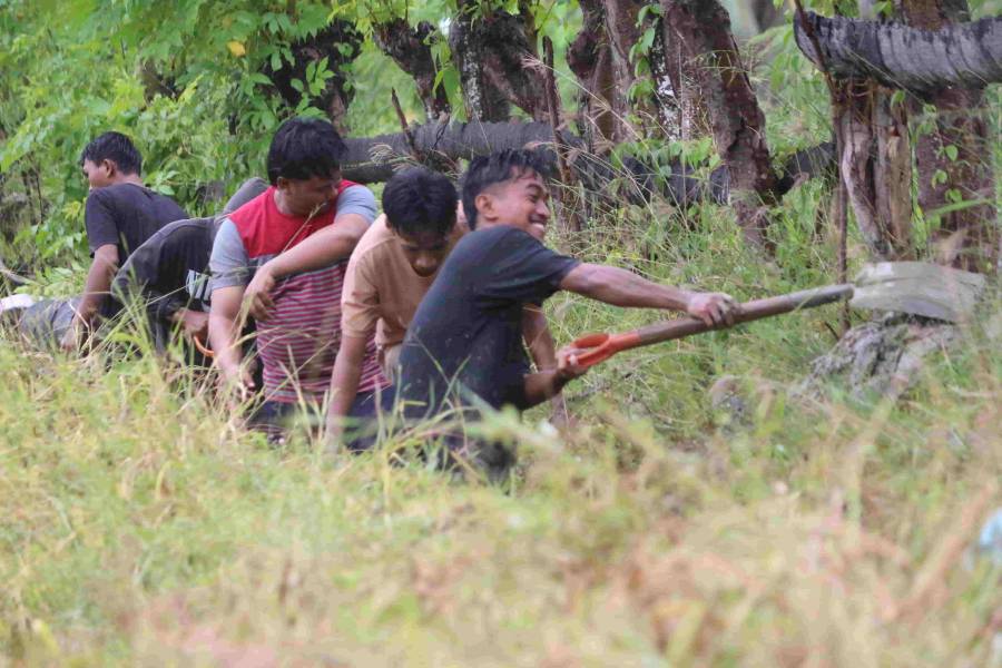 Melihat kondisi tersebut mereka berupaya melakukan pembersihan lokasi yang menjadi titik sentral untuk pengairan area persawahan Bunuyo itu.