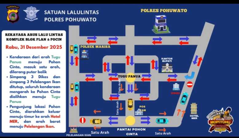 Nah, mengantisipasi hal tersebut, Kepolisian Resor (Polres) Pohuwato melalui Satuan Lalu Lintas (Satlantas) telah mengaturnya dengan rekayasa arus lalu lintas.