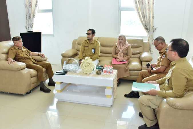 Kabardaerah.or.id, Pohuwato – Bupati Pohuwato, Saipul A. Mbuinga, bersama Wakil Bupati, Iwan S. Adam, didampingi Sekretaris Dinas Kesehatan, dr. Yenni Ahmad, menerima kunjungan Kepala Badan POM Gorontalo, Lintang Purba Jaya, S.Farm., Apt., M.Si bersama jajaran di ruang kerja bupati, Selasa (18/11/2025).